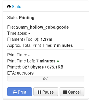 You have now installed Octoprint on your Raspberry Pi, and can now connect to its web server with the URL http://octopi.local ( or if you changed your hostname, with the URL http://YOURHOSTNAME.local).